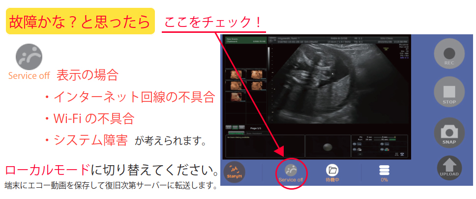 インターネットが正常になると自動にサーバーにアップロードされ、妊婦様が確認できる状況になります。